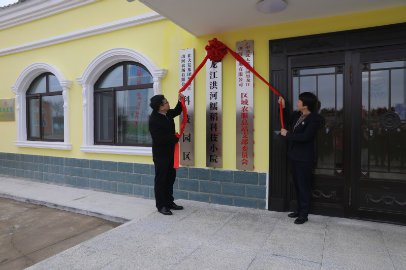 会后,垦校双方共同前往北大荒集团洪河农场有限公司,举行了“黑龙江洪河糯稻科技小院”揭牌仪式。
