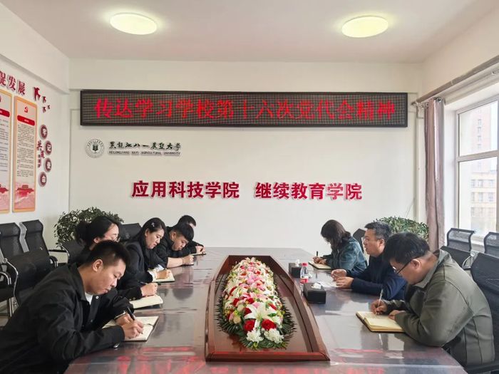 为深入学习贯彻中国共产党黑龙江八一农垦大学第十六次代表大会精神,进一步统一思想、凝聚共识,4月30日下午,应用科技学院党委书记高波主持召开专题会议,传达学习中国共产党黑龙江八一农垦大学第十六次代表大会精神。学院党委副书记刘芳芳、全体党支部书记参加会议。会议围绕党代会报告的核心要义、战略部署及贯彻落实要求展开深入学习,并就学院下一步学习贯彻工作作出具体安排。
