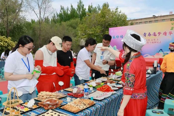 活动还包含了精彩纷呈的民族文化展示互动体验,文化体验专区分为“民族瑰宝集萃阁”“民族匠心手作坊”“民族鲜馐品鉴居”“民族游艺欢聚园”“铸牢中华民族共同体意识展览专区”五个展区,师生们积极参与,在感受与互动中解锁民族文化密码。