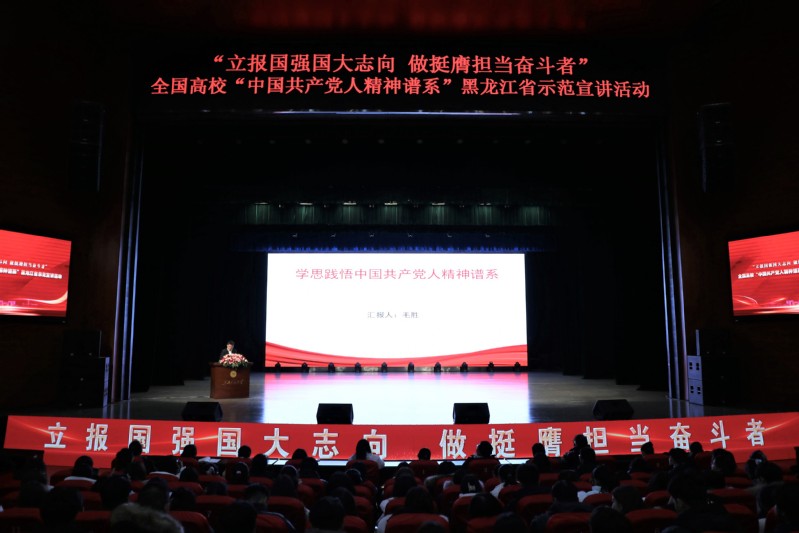 11月28日下午,由教育部思想政治工作司指导、黑龙江省教育厅主办、东北石油大学承办的全国高校“中国共产党人精神谱系”黑龙江省示范宣讲活动成功举办。教育部思想政治工作司宣教处向美玲,黑龙江省教育厅二级巡视员杨德斌,黑龙江省教育厅思想政治教育处处长张爽出席宣讲活动。我校党委常委、宣传(统战)部部长杨艳秋率队,与宣传(统战)部、学生工作部(学生处)相关人员,马克思主义学院教师、“明理知行”辅导员宣讲团及北大荒精神宣讲团的师生代表共同到场聆听了这场高水平的精神盛宴。