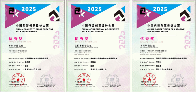近日,2025年中国包装创意设计大赛结果揭晓,食品学院(北大荒农产品加工现代产业学院)包装工程专业学子表现优异,参赛的6个作品中,获三等奖2项,优秀奖3项。