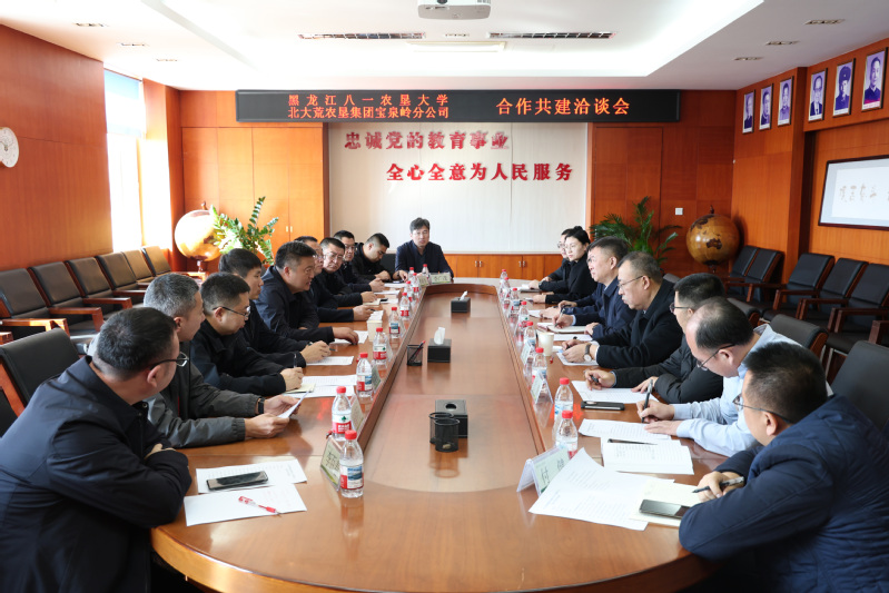 13月26日,北大荒农垦集团宝泉岭分公司党委委员、副总经理任艳军一行来校洽谈交流,副校长孙东波出席会议,...