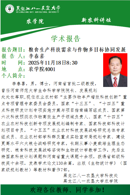 学术报告:粮食生产科技需求与作物多目标协同发展