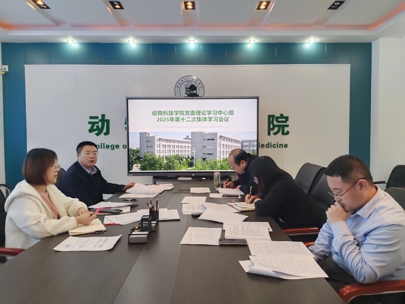 11月27日,动物科技学院召开第十二次党委理论学习中心组学习会议,专题学习贯彻党的二十届四中全会精神和习近平总书记重要讲话精神,理论学习中心组成员参加会议,学院党委书记王天亮主持会议。