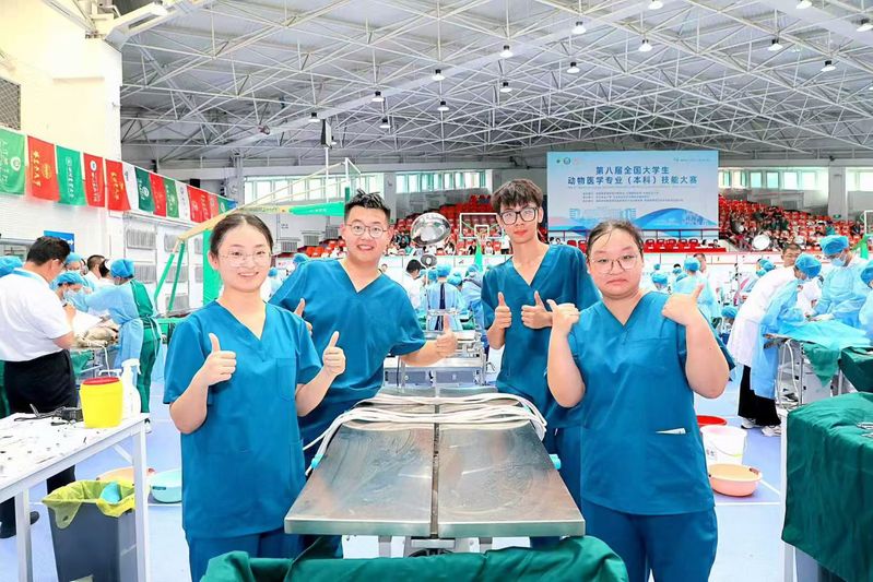 8月18日至20日,由中国兽医学院院长联席会和中国兽医协会联合主办的第八届全国大学生动物医学专业(本科)技能大赛在黑龙江哈尔滨举行,吸引了全国71所本科高校代表队参与角逐。我校动物医学专业梁树轩、张小雪、万鑫、苏欣雨和吕亚欣五位同学组成的代表队发挥出色,凭借精湛的临床技能和稳定的临场表现,荣获团体特等奖,实现我校在该项赛事中的“三连冠”。代表队还在“山羊瘤胃切开术”单项比赛中获得优异奖。