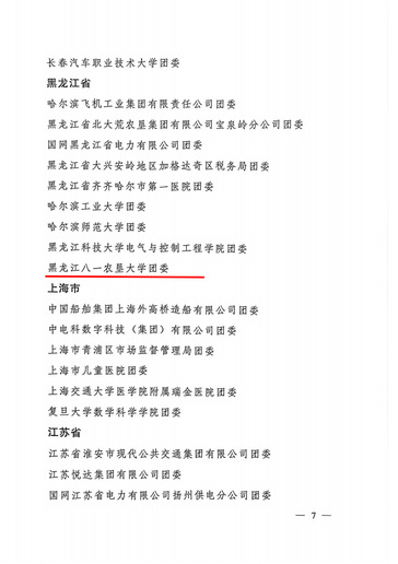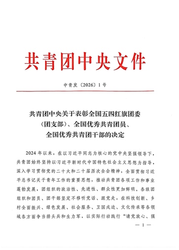 近日,《共青团中央关于表彰全国五四红旗团委(团支部)、全国优秀共青团员、全国优秀共青团干部的决定》(中青发〔2026〕1号)发布,黑龙江八一农垦大学团委荣获“全国五四红旗团委”称号。