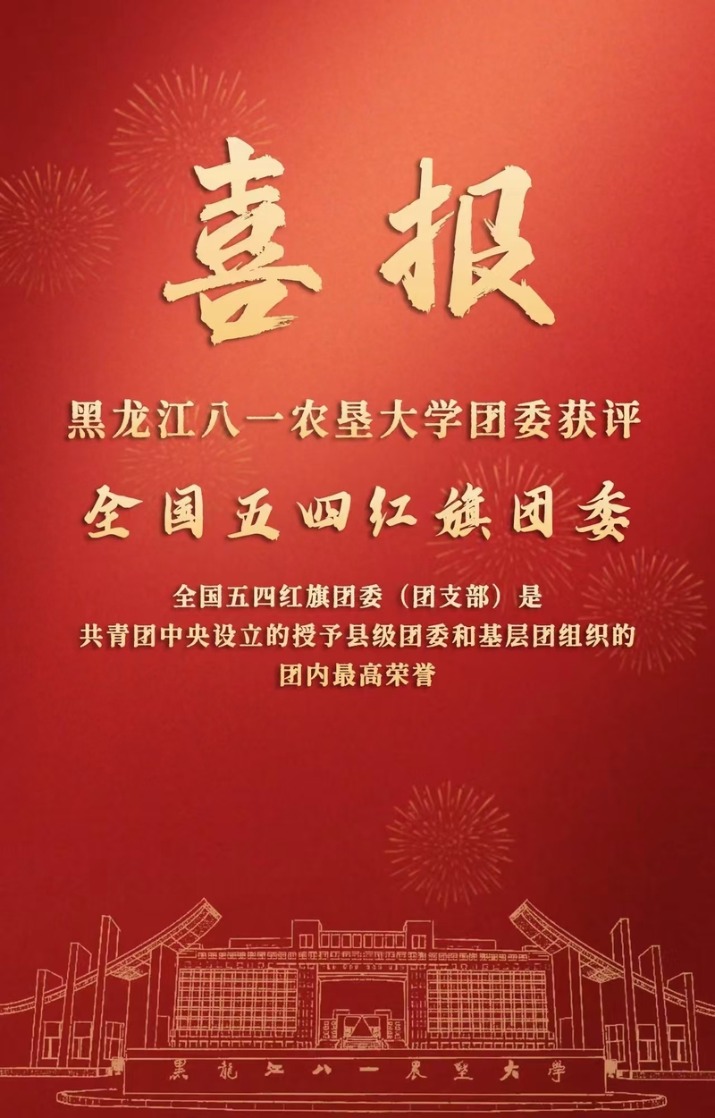 近日,《共青团中央关于表彰全国五四红旗团委(团支部)、全国优秀共青团员、全国优秀共青团干部的决定》(中青发〔2026〕1号)发布,黑龙江八一农垦大学团委荣获“全国五四红旗团委”称号。该奖项是共青团中央授予基层团组织的最高荣誉,是对我校共青团工作的高度肯定和有力褒奖,也是我校团组织首次获得此殊荣。