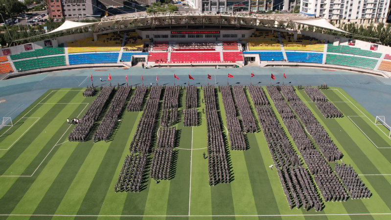 9月10日上午,2023级新生军训会操暨总结表彰大会在体育场举行。军训旅旅长、副校长王晓星,军训旅成员、全体教官以及相关职能部门和学院领导参加大会。