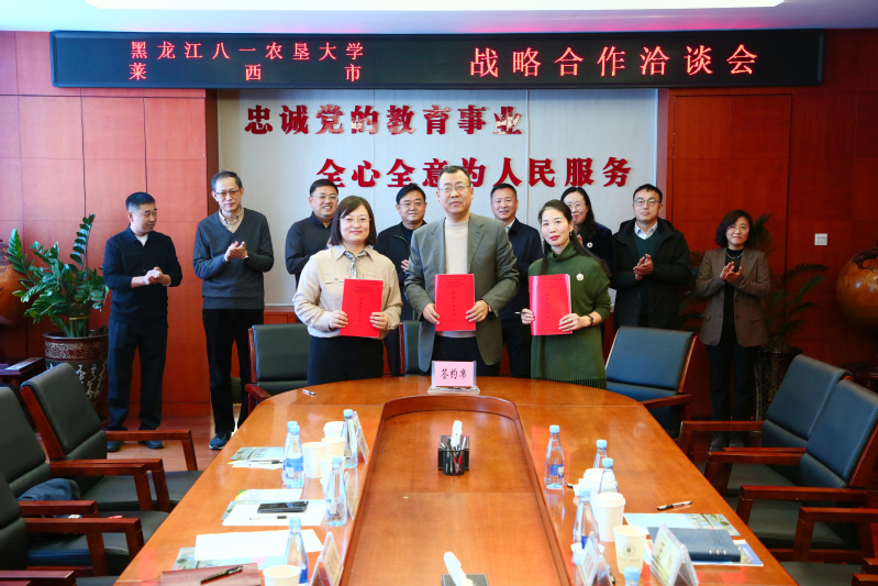 会上,莱西市望城街道党工委书记姜惠、新农村发展学院院长赵旺和青岛莱垦农业技术有限公司负责人朱秀英代表三方签署战略合作协议。