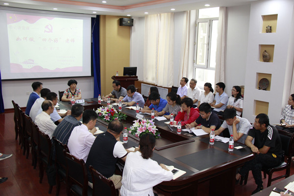 董广芝从“党和教育的初心是什么”“如何才能不忘初心”“如何做‘四有’好老师”三个方面进行了细致地讲解。她强调,师者传道授业解惑,是科教兴国、教育强国的基础,大学之所以为大学,不在大楼而在大师。全体教师要以“四有”好老师的标准严格要求自己,以德立身、以德立学、以德施教,做到四个回归,力求有理想信念、有道德情操、有扎实知识、有仁爱之心,用知识体系教、用价值体系育,因材施教、因时而化,做一名人民满意的优秀人民教师。党课内容与学校教学科研、后勤服务、学生工作、育人体系紧密结合,亲切自然、润物无声,与会者深受教育启发和触动。党员教师们纷纷表示,董书记的讲解内容丰富,逻辑严谨,深入浅出;不仅讲道理,讲党的教育方针,传达教育讲话精神,更讲出高校办学要“广开引才进才之路,师生人尽其才之途,勤奋敬业做事业,规矩纪律挺在前”的思想指引。