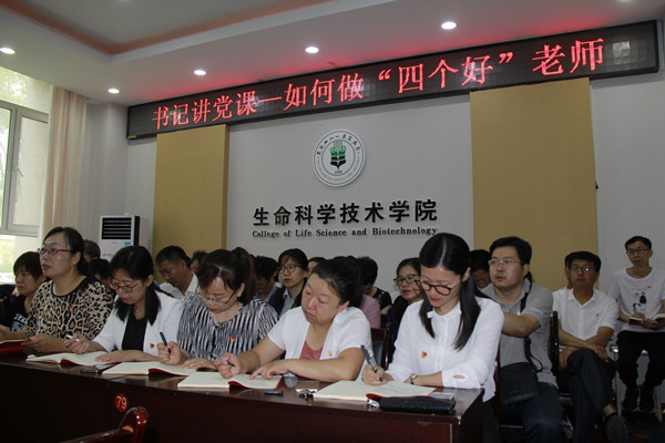 7月5日上午,校党委书记董广芝以《不忘初心,牢记使命,做“四有”好老师》为题,为生命科学技术学院党委、机关党委校办党支部党员、教师讲党课。