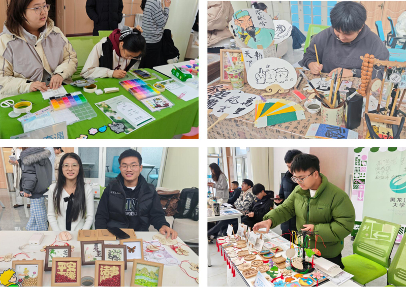 本届双创集市注重体验感与互动性。“云端校园”团队现场展示激光雕刻定制图案的流程,吸引众多同学驻足观看;“小麦花卉”团队带来亲手种植的多肉植物,与同学们分享花卉护理经验;“廿四风标本定制”团队展示成员制作的植物昆虫标本,通过滴胶、塑封等工艺处理,制作成为精美的昆虫微景观标本工艺品;“新中式文创”团队推出互动教学环节,指导同学们亲手制作漆扇作品。